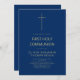 Minimalista Dourado Cross Boy First Sagrado Communion Marinho Azul e Dourado. Disponível digitalmente e impresso. Simples elegância para este tempo especial para sua filha ou filho. Personalize facilmente as palavras para si. Você pode alterar cores de texto e de fundo se desejar por meio da opção editar mais.