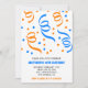 Convites simples de aniversário de 10 anos Confete Azul caligrafia tipografia marco clássico elegante colorido celebração moderno