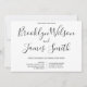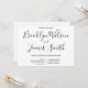 Simples convites de casamento com texto preto de script alterável (você pode mudar o texto) impressos em fundo branco. Estes convites podem ser usados quando o casal hospeda o casamento com suas famílias.