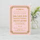 Estes convites para o casamento apresentam uma paleta cor rosa e dourada, uma moldura geométrica e outros detalhes estilísticos inspirados na Arte Deco e nos vinte e poucos anos ruidosos. Você pode personalizar os campos de texto de exemplo de acordo com o seu gosto.