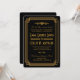 Estes convites para o casamento apresentam uma paleta a cores preta e dourada, uma moldura geométrica e outros detalhes estilísticos inspirados no Art Deco e nos vinte e poucos anos ruidosos. Você pode personalizar os campos de texto de exemplo de acordo com o seu gosto.