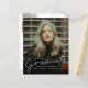 Este convite para formatura de na moda, moderno e elegante, apresenta uma camada de formando de script e um nome personalizável, escola e foto na frente. A parte traseira oferece felicitações e detalhes de eventos com mais 2 fotos. Uma forma excelente de mostrar seu formando.