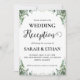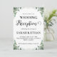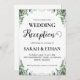 Alcance elegância sem esforço com nossos convites minimalistas de recepção de casamento de eucalipto simples. Perfeito para a noiva consciente do orçamento, esses convites de tendências apresentam um design botânico limpo que captura a essência do seu dia especial. Com foco em verde-luxuoso, esses convites oferecem uma aparência nova e moderna sem quebrar o banco. Elevem seu estilo de casamento com esta simples e espantosa escolha.