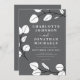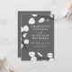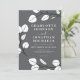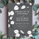 Belo e elegante eucalipto deixa Cinza de gata de primavera convite para casamento com folhas brancas e detalhes da arte em uma cinza de ardósia. Um design minimalista moderno de convite para casamento de folhagem simples, perfeito para um download de arte botânica imprimível ou um convite para casamento impresso moderno. Modelos fáceis de usar com um roteiro de tipografia elegante e branco sobre fundo azul. Esboço verde minimalista único, na moda e artista criaram convite de casamento personalizado. Arte original da artista Catherine Sweetman