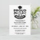 Um convite na moda para uma festa de formatura. Ele apresenta um design de tipografia preto e branco com as palavras "mãe orgulhosa e pai de um formando". Moderno e simples com um toque de letras retrógradas. Os modelos de texto são fáceis de personalizar. Disponível como placas impressas ou como um download instantâneo para enviar em seu telefone.