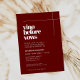 Vino antes dos votos: Chá de panela de provando de vinho. Minimalista, porém impressionante: adote este design tipográfico ligeiramente retrorreflector para a papelaria do chá de panela, com uma cor elegante de creme. Texto, cores e fundo totalmente personalizáveis.