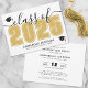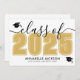 Este anúncio clássico, porém moderno, de graduação horizontal duplica como convite de festas. A frente apresenta uma "Classe de 2025" de tamanho excessivo, em negrito e branco, com o ano em um ouro amarelo rico, complementado por sotaques de cinza elegantes. Dois ícones de boné de formatura acrescentam um toque comemorativo, com espaço abaixo para o nome do formando e a escola. As cores podem ser personalizadas para corresponder às cores da escola para uma aparência personalizada. A parte traseira se transforma em um convite de festas, apresentando um layout de na moda com espaço para detalhes do evento, como data, hora, local e informações de RSVP. Uma mistura de tipografia limpa e roteiro elegante cria uma sensação sofisticada mas festiva, perfeita para celebrar esse marco com a família e os amigos. Totalmente personalizável para se adequar ao seu estilo!