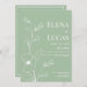 Um simples país, elegante, branco e poeirento, com flores de menta, esboça convite para o casamento. Este convite de casamento floral feito à na moda minimalista é perfeito para qualquer garota de na moda elegante e sofisticada ou qualquer outra pessoa. Este design é ideal para um evento de tendências e na moda. Personalize este design com sua própria mensagem e informações personalizadas. Todas as designs são impressas.