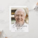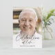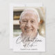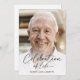 Esta é uma celebração moderna de um convite à vida para honrar a vida do seu amado. O design usa uma fotografia simples e um roteiro clássico de caligrafia. Este convite pode ser facilmente personalizado com sua própria foto e texto para criar um tributo especial para o funeral, memorial ou celebração da vida de seu ente querido usando o modelo fornecido. Entre em contato com o designer para obter informações sobre este design ou sobre produtos correspondentes.