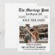 Anuncie seu dia especial com estilo com este convite de "Save the Date" de jornal personalizado com foto. Com uma grande foto personalizável e espaço para incluir seu site de casamento pessoal, este design combina um layout de jornal limpo com elegância atemporal.
