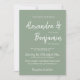Imagem elegante do roteiro de tipografia na moda no convite casual de casamento em simples faixas verdes e brancas, com nomes de noiva e noivo, caligrafia. ++++++++++++++++++++++ Você pode alterar as cores do texto e do plano de fundo após selecionar a opção EDITAR USANDO a FERRAMENTA DESIGN em PERSONALIZAR ESTE menu MODELO. +++++++++ O convite é adequado para qualquer época - primavera, verão, outono, inverno - cerimônia de casamento e recepção.