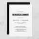 Na noite anterior... Certifique-se de que tudo é perfeito para o grande dia; faça alguns convites modernos para o seu janto de ensaio de casamento. Vá por um simples e impressionante design preto e branco para sua papelaria de casamento. Esse estilo moderno e elegante pode se adequar a qualquer casal. Totalmente personalizável, você pode facilmente mudar as cores do texto ou do fundo para seu gosto.