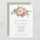 Simples Janto de Ensaio de Casamento Verde de Sábio Floral Convite. Um design elegante e moderno com um buquê floral cor-de-rosa poeirento. Personalize facilmente com seus detalhes. Altere o texto e as cores de fundo se quiser combinar o seu próprio tema de cor de casamento através da opção Editar mais.