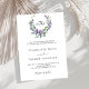 Fundo branco. Uma coroa floral feita de flores lavandas e de eucalipto verde de cor aquosa. Personalize e adicione suas iniciais, nomes e detalhes do monograma. Texto preto.