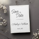 Um casamento com uma linha esbranquiçada, branca e dourada, embrulhada em ouro, "Salve o convite das Datas" é a design perfeita para complementar um evento clássico e sofisticado. Ele apresenta uma simples e elegante borda dourada com tipografia preta sobre fundo branco. Este design tradicional, único e clássico impressionará todos os seus convidados.