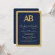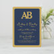 Crie um convite de casamento único e elegante para ouro e monograma azul marinho, com letra audível serif para as iniciais do monograma, em conjunto com uma letra moderna para os detalhes adicionais do convite de casamento, aninhados por uma simples estrutura dourada. fundo azul de marinho elegante para o verso do convite. Totalmente personalizável, permitindo que você ajuste todas as cores, fontes e tamanhos para corresponder à sua preferência e ao tema do casamento.