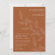 Este elegante modelo de convite de casamento minimalista, mostra ramos de folha de arte em um fundo laranja queimado. A letra moderna do roteiro de caligrafia se emparelha lindamente com uma fonte serif tradicional. Um belo convite para um casamento outono.