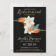 Convide os convidados para o seu evento com este convite de festas de aposentadoria moderno, na moda, que tem um design único com flores laranja e brancas e uma borboleta azul giro em um fundo preto elegante. O fundo é preto e todos os textos são personalizáveis, você pode personalizá-los, e até transformá-los em um convite de aniversário ou aniversário. Também disponível em formato digital e em outras variações de cor, solicite o seu agora!