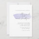 Este convite de casamento simples e minimalista apresenta uma pincelada lilática destacando os nomes dos casais no roteiro da cinza de carvão da moda. Personalize o texto restante na fonte do serif. A parte traseira da placa é uma sombra coordenadora de lilás sólido.