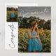 Esta combinação de convite para apresentação de na moda, elegante e de licenciatura, apresenta uma camada de formandos de script e um nome personalizável, escola e foto na frente. O backside oferece gratos e detalhes de eventos com mais 2 fotos. Uma forma excelente de mostrar seu formando.