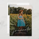 Esta combinação de convite para apresentação de na moda, elegante e de licenciatura, apresenta uma camada de formandos de script e um nome personalizável, escola e foto na frente. O backside oferece gratos e detalhes de eventos com mais 2 fotos. Uma forma excelente de mostrar seu formando.
