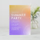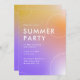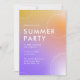 Um convite de festas de verão moderno com um gradiente roxo, laranja, amarelo como fundo. Use este convite para convidar seus amigos e família para sua próxima festa de verão em sua casa. Use-o para festas de cocktail, horas felizes, churrascos, camisas de casa e muito mais.