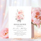 Convites de chá de panela simples e delicados e personalizados. Buquê em peônias cor-de-água rosa, flores de pedras com verde. Os convites perfeitos para qualquer tema de chá; verão, primavera ou a qualquer momento do ano. Cartões modelo fáceis de editar; cor, texto, fonte podem ser alterados.