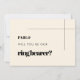 Você será o nosso cartão de apresentação de porta-anel. Minimalista, porém impressionante: adote esta design tipográfica ligeiramente retrorreflectora para a sua papelaria de casamento, com uma elegante cor creme. Texto, cores e fundo totalmente personalizáveis.