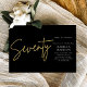 Simples Black and Dourado Glitter 70 Birthday Invitation apresenta um design contemporâneo, subestimado, com uma folha de ouro falso e elegante "Setenta" em roteiro manuscrito. Contra um fundo negro, exude um senso de minimalismo moderno e elegância. Este convite é a escolha perfeita para homens e mulheres celebrando este marco adulto significativo, oferecendo uma surpresa excelente para a sua festa de aniversário 70 com todos os detalhes essenciais do seu partido, apresentados elegantemente.