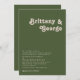 Este simples retrorreflector vibe o convite tradicional de casamento verde-oliva é perfeito para o seu clássico casamento de tons de terra. A design apresenta uma fonte hippie rustic boho minimalista. A paleta neutra a cores do sudoeste do deserto e as letras do século do médio boêmico da Terra combinam-se para uma design de destino ocidental minimamente moderna e perfeita. Sinta-se livre para mudar a cor adicionar seu próprio trabalho de arte, gráficos ou fotos. Se tiver alguma dúvida sobre a design deste produto, por favor sinta-se à vontade para nos contactar!