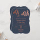 Crie um convite personalizado e esplêndido, chique e minimalista do Sr. e da Sra. Wedding para seu casamento ou aniversário. Este convite para o casamento apresenta um roteiro de caligrafia espaçoso e bonito escrevendo com a letra falsa de impressão de folha de ouro para "Sr. e Sra." e um simples fundo de marinho. Você pode personalizá-lo facilmente com seu próprio texto e personalizá-lo de acordo com o seu gosto. Por favor, note: "Sr. e Sra." e a trabalho de arte do anel não podem ser editadas. Nota complementar: O rosa de folha de ouro é um falso efeito de folha de ouro. Não é a folha de ouro de rosa a quente.
