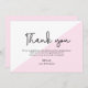 Personalize este cartões de agradecimentos moderno, simples e elegante. Personalize a mensagem enquanto gostaria de expressar sua gratidão aos seus convidados especiais enquanto aguarda o nascimento da sua menina. Detalhe diagonal cor-de-rosa para um toque moderno. A cor pode ser alterada para corresponder ao tema do seu chá de fraldas usando a ferramenta "personalizar mais", mas sinta-se à vontade para entrar em contato comigo em info@lddesignloft.com se precisar de ajuda. Parabéns!