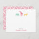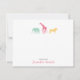 Essa simples papelaria de safari apresenta três silhuetas no topo da placa: um elefante, girafa e leão em um esquema de cor pastel. Personalize com seu nome no fundo, em rosa. A parte traseira apresenta um padrão de escotilha rosa e cruzada. Essa papelaria funciona como o acompanhamento perfeito do Simple Safari Animal Chá de fraldas Invitation.