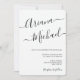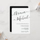 Apresentando nosso Simple Script Black and White Casual Chic Wedding Invitation com um RSVP de Código QR no verso - uma opção moderna e na moda para casais que buscam um design sem esforço elegante. A simplicidade da letra do roteiro, combinada com a clássica paleta de cores preto e branco, cria uma estética de eterno que se adapta a vários estilos de casamento. O convite apresenta uma vibração casual, mas chique, definindo o tom para uma celebração relaxada e alegre. O inovador código QR no verso simplifica o processo de RSVP, acrescentando um toque contemporâneo aos seus preparativos de casamento. Aproveite a versatilidade desse convite, adequado para casais que apreciam uma estética quic casual. A combinação de tipografia de scripts e o tema monocromático oferece sofisticação, garantindo que o anúncio do casamento seja na moda e prático.