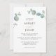 Os sacerdotes de eucalipto verde destacam este simples convite de casamento moderno estilo boho com sutil elegância. O layout de texto da fonte serif adiciona um refinamento adicional para transmitir seus detalhes de casamento de forma elegante. Este esquema de cores funciona bem para casamentos em qualquer estação do ano. Personalize o texto no modelo de texto fácil de usar. Você pode mudar o texto de acordo com suas preferências pessoais.
