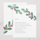 Este simples e elegante convite para o casamento de Natal apresenta imagens simples de folhas verdes de cor-d-água de inverno, com bagas brancas vermelhas, sobre um fundo branco limpo para um olhar minimalista espantoso, mas rústico.