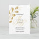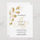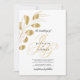 As iniciais de um monograma de ouro chico com branco na moda elegante e ouro deixam convites florais de casamento. Este simples convite de casamento de folhagem dourada é perfeito para qualquer garota sofisticada. Este design é ideal para um evento de festa elegante e de tendências. Personalize este design com sua mensagem e informações personalizadas. Todas as designs são impressas.