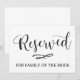 Sinal de assento reservado elegante para a família ou cortejo! Imprima em kraft para um visual rústico!