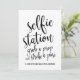 Uma elegante placa de casamento de ponta, que apresenta o texto "estação selfie, agarra uma prótese e bate uma pose" em uma letra extrovertida, a textura do pincel adiciona um sentimento espontâneo e brincalhão. A cor de fundo pode ser personalizada de acordo com as suas necessidades e preferências, contacte-me se tiver alguma solicitação especial.