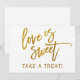 Sinal de Buffet de Doces "O Amor é Doce" com Letra de Pincel (Folha Dourada Falsa): Decore a mesa de buffet de doces de casamento com este sinal de letra de pincel moderna. Está configurado com um efeito de folha dourada falsa.