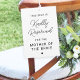 A placa de cerimônia de casamento de assentos reservados apresenta um roteiro moderno com texto personalizado que pode ser personalizado para a pessoa específica para quem a cadeira é gentilmente reservada. Duas design laterais.