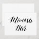 Sinal de casamento simples e elegante em preto e branco no estilo caligráfico "Mimosa Bar".