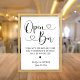 Defina o tom para uma celebração memorável com este letreiro de "Bar Aberto" com escrita de coração moderno. O texto apresentado lúdico diz que as bebidas de hoje à noite são gratuitas e as histórias de amanhã serão inestimáveis, tudo estilizado em caligrafia romântica com floreios de coração assinados. Personalize com seus nomes e data de casamento para um toque personalizado no bar. Todo o texto é totalmente editável.