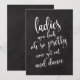 Um sinal de casamento elegante e moderno, apresenta o texto "Ladies você está muito bonita agora saia e dance" em uma fonte de letra manuscrita extrovertida, a textura da pincelada adiciona um sentimento espontâneo e divertido. A cor do fundo pode ser personalizada de acordo com as suas necessidades e preferências, por favor entre em contato comigo se tiver algum pedido especial.