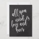 Um sinal de casamento elegante e moderno, apresenta o texto "Tudo o que você precisa é amor e cerveja" em uma fonte de letra extrovertida, a textura da pincelada adiciona um sentimento espontâneo e divertido. A cor do fundo pode ser personalizada de acordo com as suas necessidades e preferências, por favor entre em contato se tiver algum pedido especial.