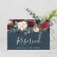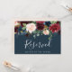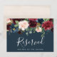 Indique a reserva de assentos em seu casamento com este sinal floral elegante em tons de joia. Personalize com duas linhas de texto personalizado em caligrafia e letras maiúsculas modernas (mostrado com "Reservado" e o nome do convidado com assento reservado), emoldurado por flores em aquarela exuberantes e folhagens verdes em tons ricos de outono em um fundo azul marinho.