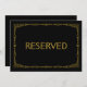 Placa de casamento "Reservado" em estilo art déco simples e elegante, personalizada com o seu próprio texto, apresenta uma moldura art déco dourada sobre um fundo preto.