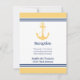 Cartão de recepção de casamento temático de âncora náutica amarelo e azul marinho com direções.