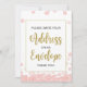 Este símbolo de chá de panela floral moderno "Por favor escreva seu endereço em um envelope" apresenta um fundo floral cor-de-rosa com cinzas brilhantes do ouro, personalizado com o nome da noiva. O texto é escrito em uma mistura de uma fonte de caligrafia lúdica e uma fonte moderna de sans.