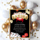 Este convite personalizado apresenta um tema de festa Casino. Uma imagem de quatro de um tipo de ás de jogar cartas é ilustrada no canto inferior esquerdo, ao lado de um par de dados vermelhos. As moedas estão caindo em volta da área de texto no centro. O clássico sinal de boas-vindas a Las Vegas é impresso no topo com o Casino impresso sobre ele num padrão glamouroso de ouros de ouro.